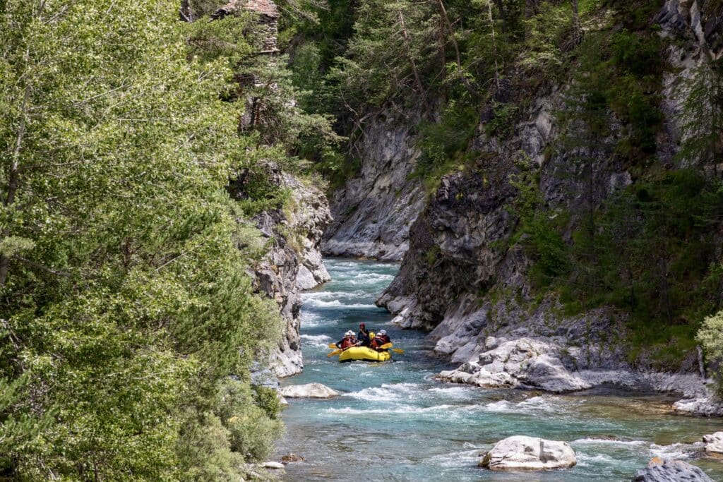 Dans le cadre exceptionnel des gorges du Guil, le raft ici devient une passion pour tous les amateurs de sensation nature en équipe.